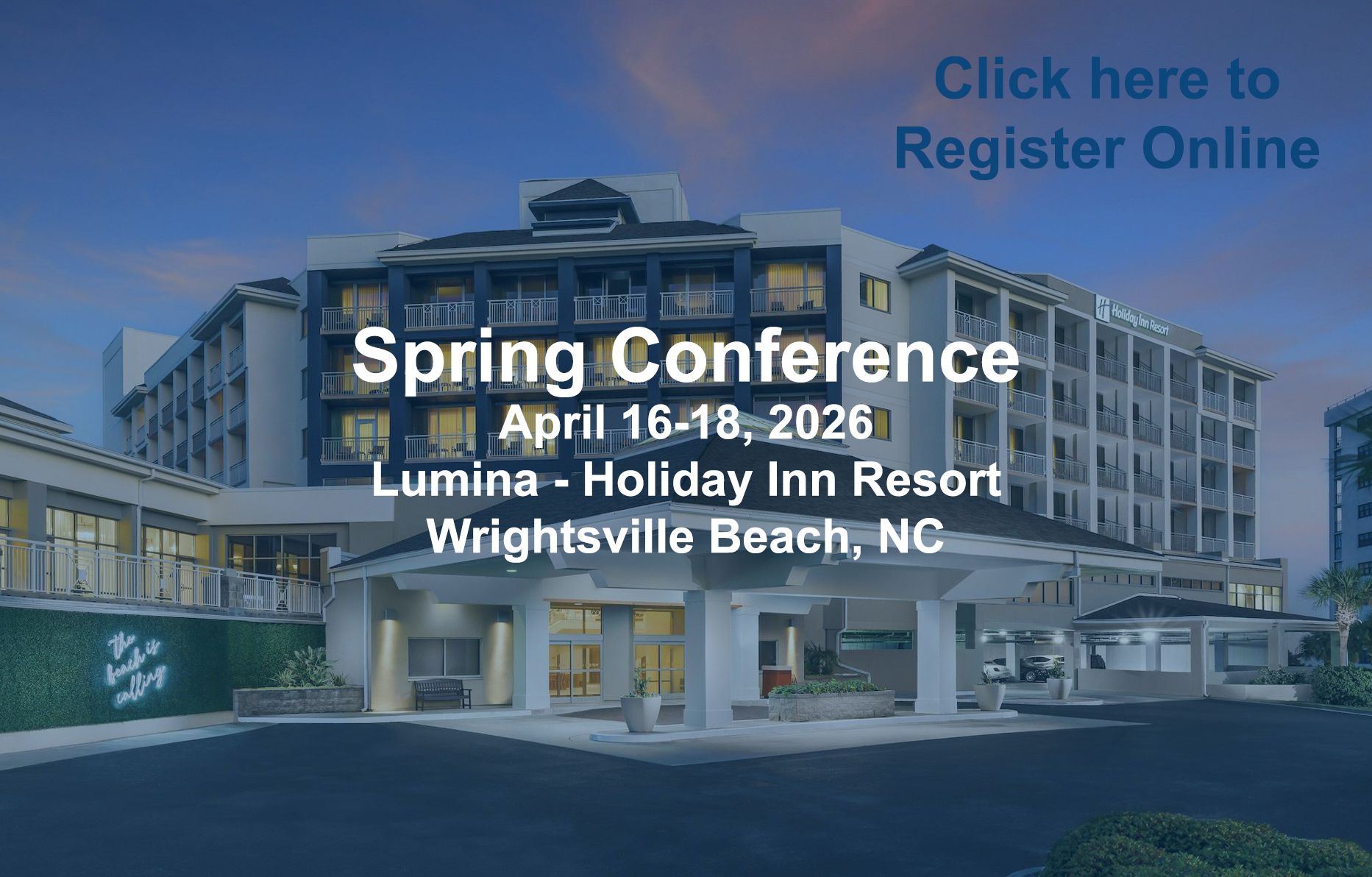 April 16-18, 2026 || Lumina - Holiday Inn Resort| Wrightsville Beach, NC|| See PDF Flyer